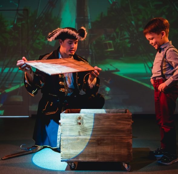 Во все времена пираты охотились за сокровищами. Однажды один пират отыскал необычный сундук, который был проклят, как бы он не старался открыть сундук, у него не получалось. Прикасаясь к нему, пирата ударяла молния, и он терял сознание. Но ведь золото так рядом… Только самые храбрые девочки и мальчики смогут разгадать тайну сундука, снять проклятие и достать драгоценные монеты!